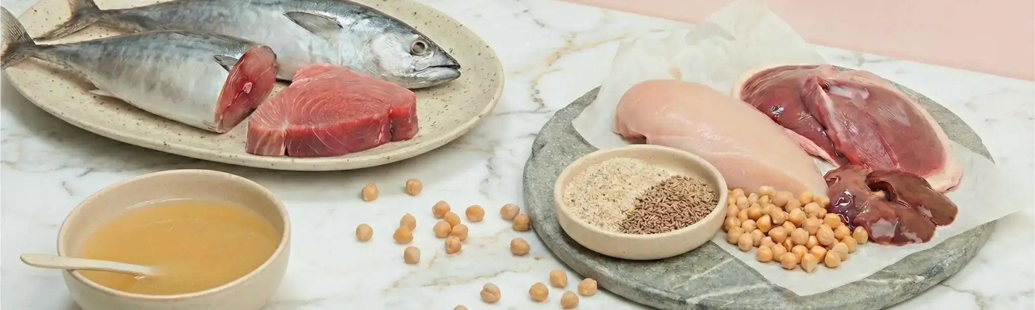 鮪魚、自熬魚湯、鴨肝、鷹嘴豆、洋車前子膳食纖維