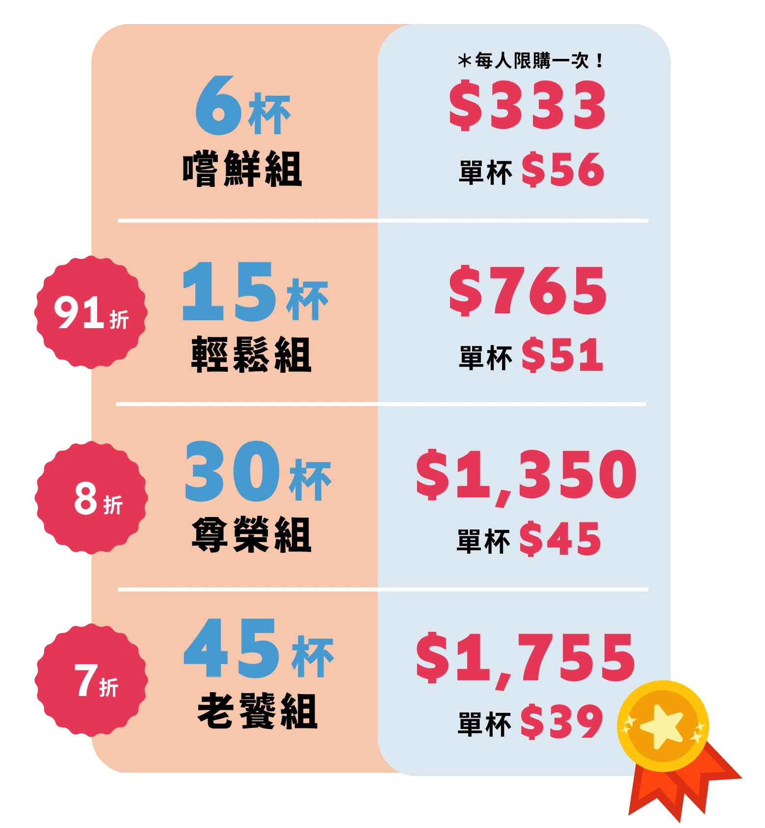 密封包裝、搖一搖即食,提供免運、快速到貨服務,多種方案任選,最低單杯只要 $39。
